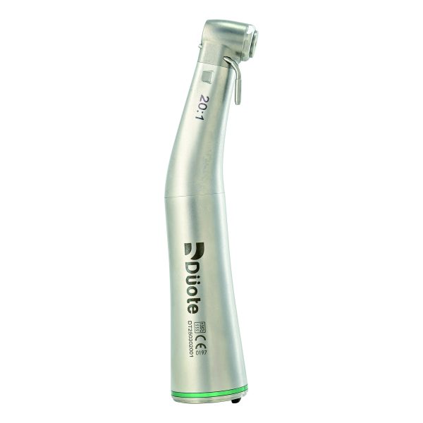 Tay khoan implant 20:1 có đèn Duote là dòng tay khoan cao cấp, được thiết kế đặc biệt để sử dụng trong phẫu thuật đặt trụ implant, hỗ trợ tối đa khi thao tác trong vùng thiếu sáng. Tay khoan trang bị đèn LED chiếu sáng trực tiếp qua fiber optic (sợi quang), giúp bác sĩ quan sát rõ vùng phẫu thuật, tăng độ chính xác khi khoan xương, mở rộng đường kính hoặc đặt abutment.